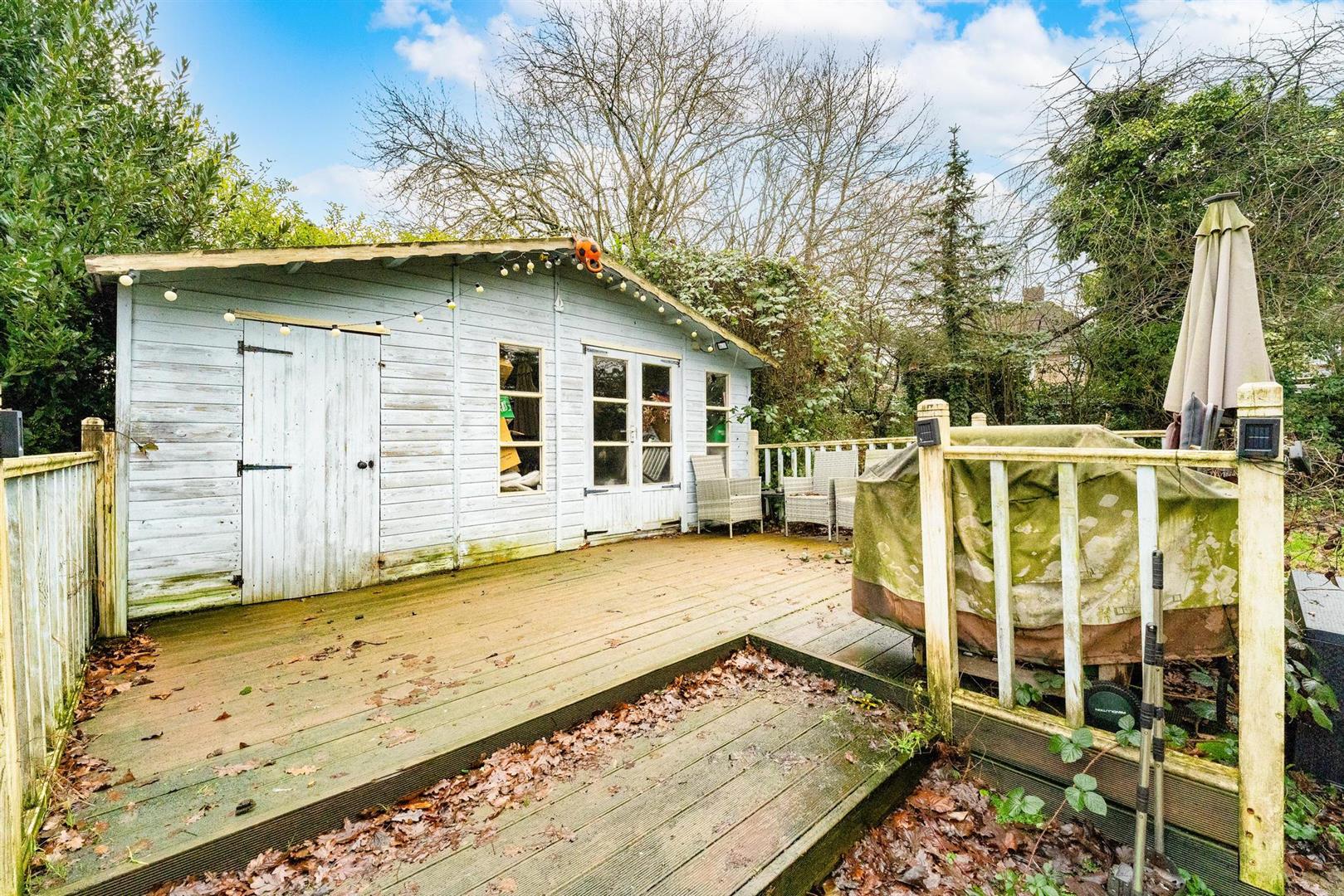 A rarely available three bedroom chalet style bungalow on a quiet turning on the Northside of Borehamwood, just a short stroll from the main high street. The ground floor accommodation comprises of a bright and airy lounge opening onto a lovely conservatory, recently renovated kitchen, double bedroom and stunning shower room. The first floor offers the two further bedrooms and beautiful bathroom with a gorgeous free standing bathtub.The rear garden to the property is huge and lends itself for amazing extension potential (subject to relevant consents). The garden currently houses various outbuildings and the owner comments that 'in summer you get complete privacy'. In addition the home offers gas central heating, double glazing and off street parking to the front.Key features